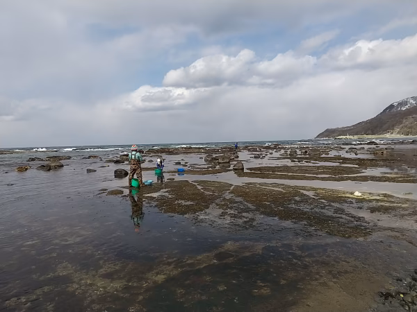 寿都町では海藻採取は午前中のみと決められているため、海が穏やかな日は、多くの女性達が磯に出て海藻採りに励んでいます。