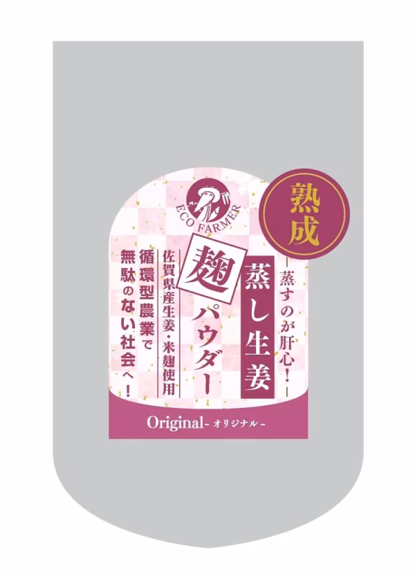 佐賀県産の規格外生姜を130℃過熱水蒸気で30分じっくり蒸し、米麹を加えて熟成させたオリジナルパウダーです。