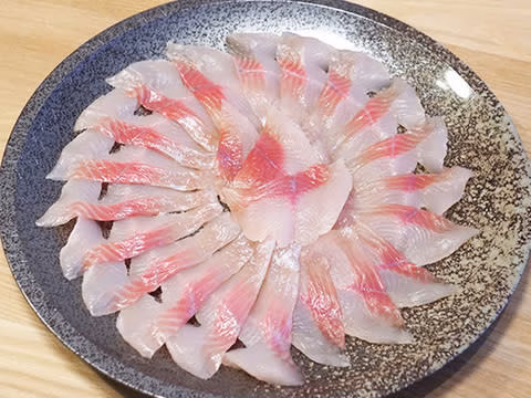 - ##製品情報 名称 イワナの刺身盛り(石川県産)冷凍・養殖 内容量 200g(3人前) 賞味期限 到着後1カ月程度 保存方法 要冷凍(-15℃以下で保存してください。) 加工者 ㈱白山堂石川県白山市深瀬120番地 <栄養成分表示(100gあたり)> エネルギー 92cal、たんぱく質 21.4g 脂質 0.7g、炭水化物 0.1g、食塩相当量 0.08g