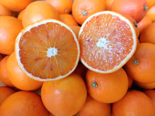 ブラッドオレンジは日本ではまだ生産量も少なく希少な品種です。特徴的な赤い果肉には抗酸化成分ポリフェノールの一種である「アントシアニン」が含まれています。