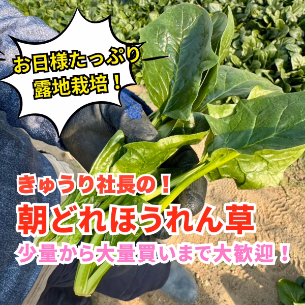 こんにちはきゅうり社長です!3月上旬より露地栽培(畑育ち)の、朝どれほうれん草の販売をします。