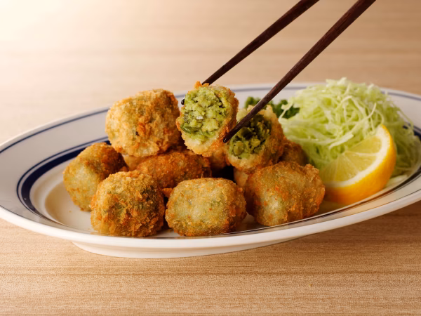 京都府最南端、木津川市山城町で育てた“山城のねぎ(九条ねぎ)”が入ったメンチボール♪