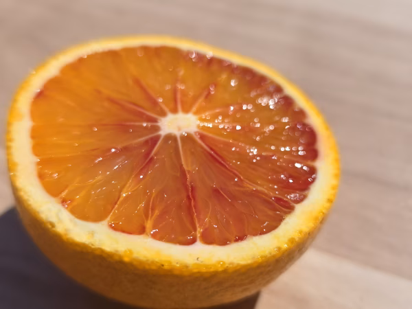 このブラッドオレンジの赤はアントシアニンの赤なのでブルーベリーなどと同じ抗酸化作用をもった色素になります。