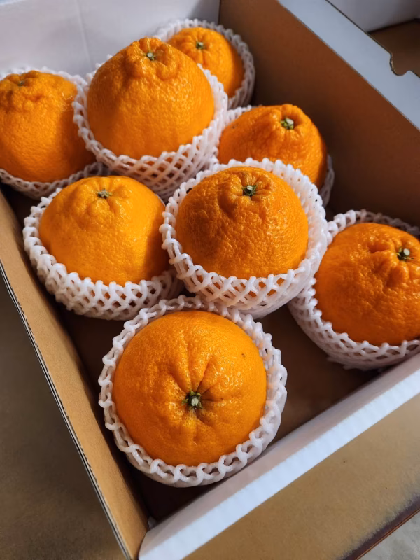✴︎不知火(デコポン)箱込み3kgでL〜2Lサイズ混合で8玉前後になります。 ✴︎甘味が強く適度な酸味もあり、果汁が多くとてもジューシーです プリプリした食感で、実を包んでいるじょうのうも薄く、そのまま食べられます 表皮も比較的柔らかく、手で簡単に剥く事ができ、手を汚さず簡単に美味しく食べれる柑橘です *酸味がそれほど強くないのでお子様から年配の方まで食べやすく人気があります ✴︎施肥は年4回、乾燥をきらうため気候に応じてこまめに散水を行なっています ✴︎収穫自体は1月頃から行い、約1~2か月ほどじっくり時間をかけて貯蔵して酸をしっかり抜いてから出荷します ✴︎樹になっているときから風による傷や鳥に食べられるのを防ぐため一つ一つの果実に袋掛けをします *丹精こめて育てた不知火をご賞味ください *酸が気になる方はしばらく置いてから召し上がってください。 ナマモノですので配送中に傷む可能性があることをご理解ください。 最後までお読みいただきありがとうございました。