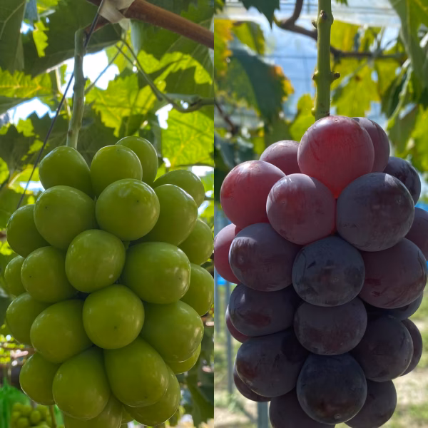 爽やかな甘さで皮ごと食べられるシャインマスカットと、濃厚な甘みと果汁たっぷりのピオーネ。