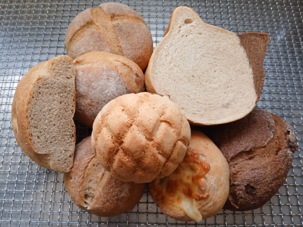 - 国産小麦粉、ライ麦、ふすま、卵、砂糖、塩、牛乳、 紅花マーガリン、天然酵母、ドライレーズン、赤ワイン、 胡桃、ココアパウダー、チョコチップ、ドライクランベリー、 オレンジピール、アーモンド、米
