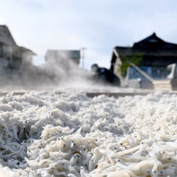ずっと天日干しを続け水分が殆ど抜けた状態が一般的に「ちりめん」と呼ばれるものとなりますが、そうなる前のふっくらで旨味を引き出したタイミングで仕上げております。