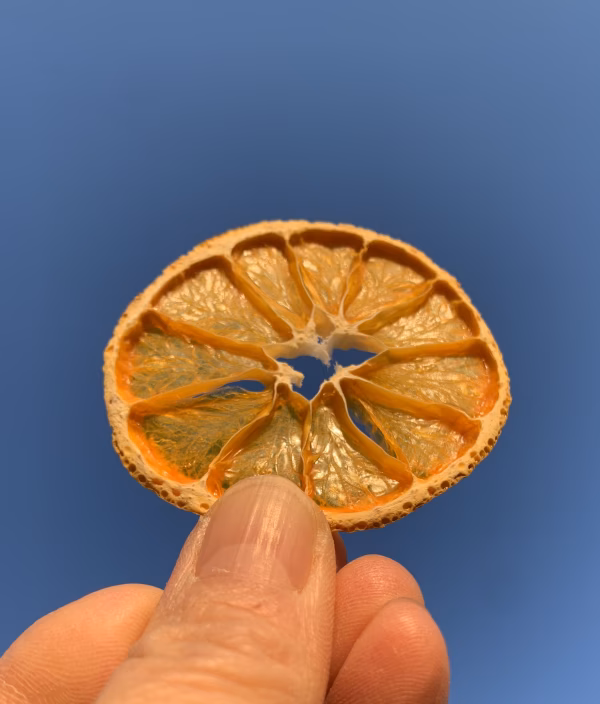 ▼みかんじゃないみたい! 「あま~い!ドライみかんってこんなに甘いの?」(愛知県・Oさん) 「甘さの中にキャラメルを感じる!」(愛知県・Iさん) 「いい香り!皮のほろ苦さもおいしい!」(愛知県・Iさん) そんな嬉しいお声をいただいている当園の【ドライみかん】はいかがですか? 農薬も化学肥料も一切使わずに育てたみかんの、訳あり品が出た時だけのご奉仕品です! 訳ありみかんを洗って、傷や黒ずみなどの難を一つ一つ丁寧に取り除き、皮ごとスライスして乾燥させ、低温でじっくり熟成させました。 みかんの旨味がギューッと凝縮されて「みかんじゃないみたい!」な味わいです。 砂糖はもちろん、着色料なども一切使っておりませんので、安心してお召し上がりいただけます。 ▼お召し上がり方 ・そのままで ・お好みのナッツと共に ・ヨーグルトに浸けて一晩おいてから ・湯煎で溶かしたお好みのチョコレートでコーティングして ・クッキー、マフィン、パウンドケーキなどに ・紅茶と一緒に淹れて ・水や炭酸水に浸けてフォンダンウォーターに  (飲み終えた後は煮詰めてジャムにも) ▼薬膳豆知識 陳皮(ちんぴ)という生薬、ご存知ですか? 七味にも入っていますよね。 陳皮はみかんの皮を乾燥させたもので、次のような働きがあるそうです。 ・体を温める ・気の巡りを良くする ・胃腸の調子を整える ・体内の余分な水分を取り除く ・痰取り除く ▼安心の美味しさ 私たちは、感動の美味しさをお届けするために、農薬や化学肥料を一切使わず、土づくり、みつばち受粉、収穫時期の見極めを大切にし、心を込めて育てています。 ▼ご注文の前にご確認ください! ・大小様々で、割れ、欠けなどがあるものも入ります。 ・種は取り除いておりますが、取りきれていない場合もございます。 ・市販のチャック付き袋へ入れるだけの簡易包装です。 ・クリックポストで発送いたしますので、納期はご指定いただけません。 ▼届いたら 冷暗所で保存し、お早めにお召し上がりください。 乾燥剤を入れて密閉容器で保存したり、冷蔵庫または冷凍庫で保存したりすると長持ちします。