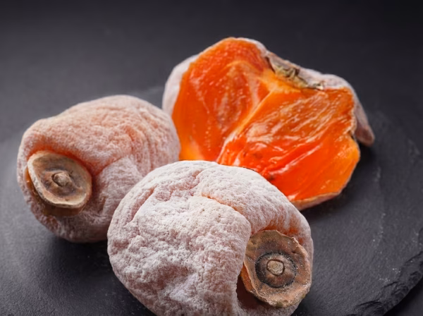 生の柿に比べて美肌美容成分の宝庫と言われるβカロテンが約4.5倍の量が含まれ、食物繊維、カリウムが豊富なのでむくみ対策や血圧の調整や便秘解消の働きが期待できます。