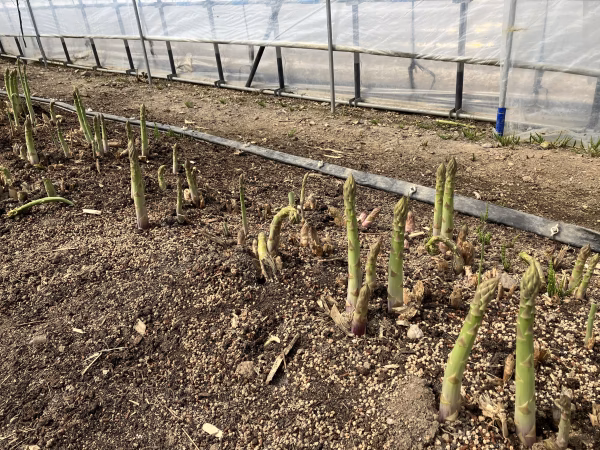 ・当園のアスパラは太くて味が濃いと好評♪