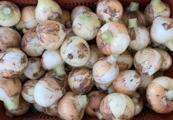 土と太陽の力だけで育った自然栽培の新玉ねぎです。