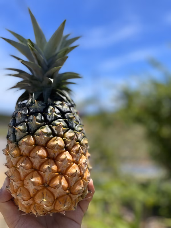 特に今帰仁村・嵐山地区は、標高が高く昼夜の寒暖差があるため、香りが高く、味がギュッと濃縮されたパインが育ちます。また、安心してお召し上がりいただけるよう、減農薬栽培を徹底しております。