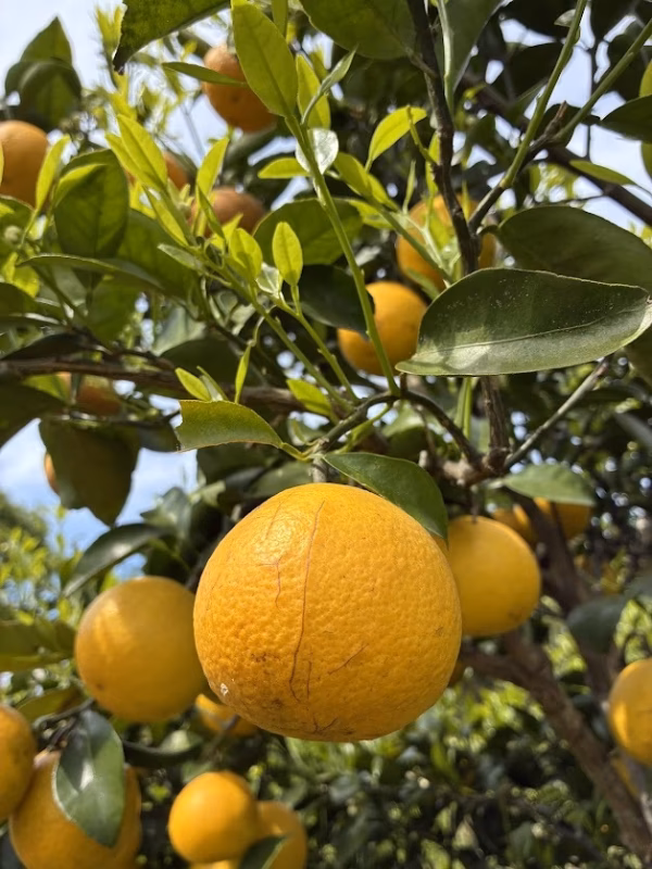 完熟になった日向夏を収穫しました。 日向夏は通常、収穫後しばらく寝かせてから出荷されることが多い柑橘ですが、 採れたてのものも甘酸っぱく爽やかな味わいで美味しくお召し上がりいただけます。 皮を薄くむき、白い綿の部分ごと食べるのが特徴で、はちみつやジャムと合わせるとより一層美味しくなります。 サラダのトッピングとしてもおすすめです。 当園の日向夏は、農薬の使用を夏に一度(カミキリムシ対策として幹に使用)のみに抑えて栽培しています。大きさは不揃いで、傷があるものも含まれますが、皮をむけば問題なく美味しくお召し上がりいただけます。 耕作放棄地を引き継ぎ、苗から大切に育ててきました。 自然豊かな鹿児島県枕崎市でのびのびと育った、みずみずしい日向夏をぜひご賞味ください。