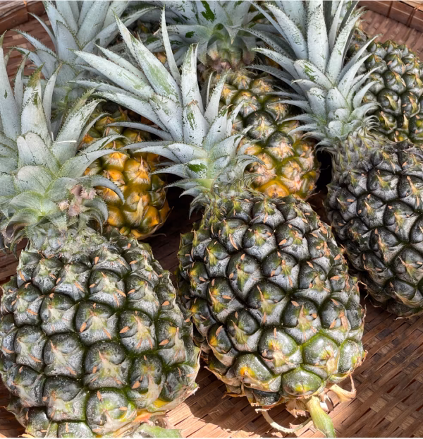 《沖縄今帰仁産》糖度17度超!極上ゴールドバレル&完熟スナックパインの食べ比べセット(合計8玉入) 沖縄の太陽と今帰仁の土が育んだ、パイナップルの最高峰「ゴールドバレル」と、手でちぎれる楽しさの「スナックパイン」。農園直送、完熟のタイミングでしかお届けしない、年に一度の贅沢セットです。 【商品内容】 内容量:8玉入(ゴールドバレル3玉+スナックパイン5玉 ※合計6kg~) ※1玉あたりの大きさ:ゴールドバレル(1~1.3キロ)、スナックパイン(400~800g) 発送時期: 6月中旬〜7月中旬(一番美味しい時期に順次発送) 配送方法: 佐川急便・クール便(送料・クール代込) 特典: 贈り物に最適な「冠芽(葉っぱ)」付きのままお届け! 【品種ごとの特徴】 【1】究極の王様:ゴールドバレル 糖度: 17度超!パインの常識を覆す蜜の甘さ。 食感: 滴るほどのジューシーさ。芯まで驚くほど柔らかく食べられます。 希少性: 栽培に3年を要する、市場に滅多に出回らない「幻の品種」。 【2】ちぎれる楽しさ:スナックパイン 食べ方: 包丁いらず!手で一粒ずつちぎってスナック感覚で。 味わい: 酸味が少なく、完熟ならではの濃厚な甘みが広がります。 【たくし農園のこだわり】 「祖父から受け継いだ、今帰仁の土と70年の絆」 戦後、何もない荒地から祖父が切り拓いた畑。私たちは「一番美味しい時期にしか出さない」という教えを守り、一玉ずつ熟度を見極めて収穫しています。 寒暖差の激しい今帰仁・嵐山地区だからこそ、でんぷん質が糖分に変わり、香りの高い最高級のパインに仕上がります。 【ギフトに選ばれる理由】 「お中元」「内祝い」「自分へのご褒美」に最適です。 お中元に: 旬の時期だけの特別な「沖縄の涼」を。 お祝いに: 「黄金の樽」の名にふさわしい贅沢な一玉を。 【お願いと注意点】 発送連絡: 約1〜2週間前に事前連絡をいたします。 お届け: 6月中旬~7月中旬 ※日付指定不可(時間帯指定や長期不在のご相談はメッセージください!) 品質: 非常にデリケートなため、鮮度を守るクール便でお届けします。 <別ページにて、異なる個数セットもご用意しております。> ・お試しセット 3玉入り(ゴールドバレル1玉・スナックパイン2玉) ・ファミリー満足セット 5玉(ゴールドバレル2玉・スナックパイン3玉) ・人気NO’1セット 6玉(ゴールドバレル2玉・スナックパイン4玉) ・贅沢セット 6玉(ゴールドバレル3玉・スナックパイン3玉)