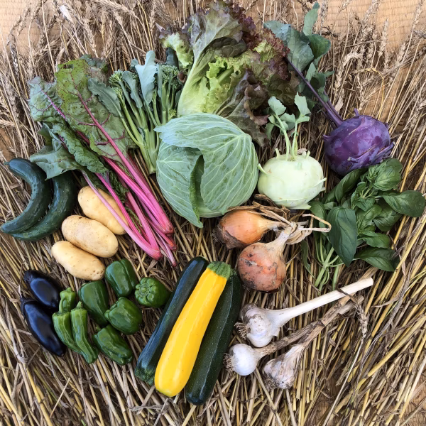 私達は、化学肥料や農薬除草剤は一切使わない、農業を行なっております。美味しいと思う品種を吟味し、栽培しております。畑は、緑肥中心(育てた草を、刈ってそのまま土に返して肥料にする方法)の畑作りをし、品種により自家製肥料を調節しながら、美味しさを1番に考えた野菜作りをしております。