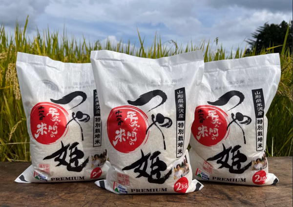 山形生まれの山形ご自慢のつや姫。名前の通り「つやつや」もっちり粒のやや大きめの美味しいお米です。