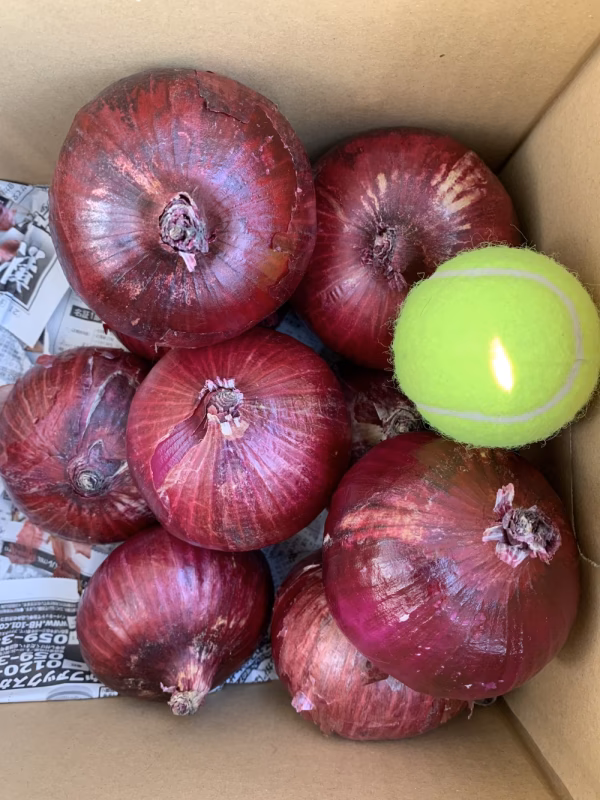 - コロナの影響で、まだ流通量が戻っていないです。 アーリーレッド(赤たまねぎ)も今が旬です。