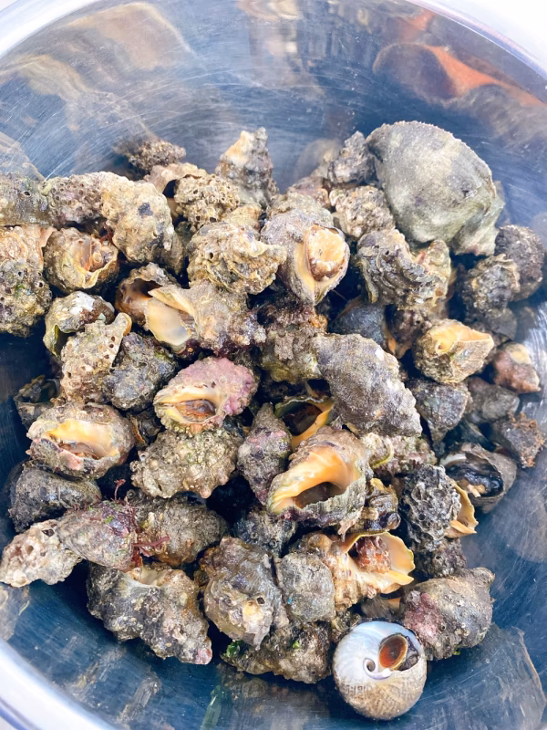ツブ貝などに近い味と食感、アワビまでではないですが肝が苦いので苦手な方は取り除いて下さい。塩茹でや甘辛く煮たりアヒージョにも