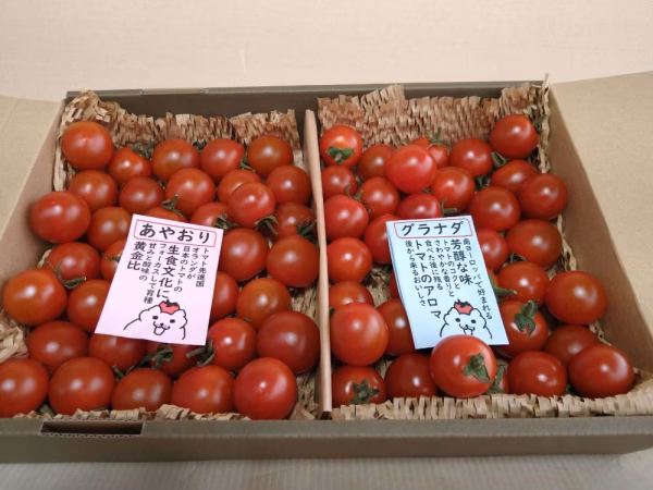 「あやおり」と「グラナダ」合わせて約800gを写真の箱にバラ詰めしお送りします。箱に若干隙間がありますが、箱が特殊サイズのため、これ以上入れてしまうと果実が傷んでしまうのでご了承ください。写真の化粧箱をエアキャップで包んで発送します。一般的にスーパーで販売されているミニトマトが170から200gなので、ミニトマトパック5から6パック分に相当します。1個あたりの果重は10-20g程度です。ミニトマト規格だとM又はLサイズになります。