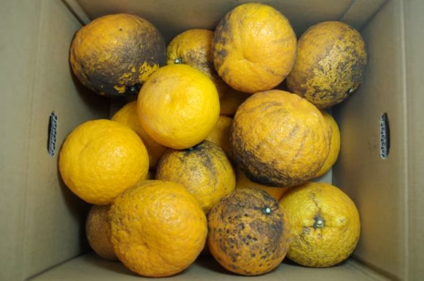 害虫などの影響でススの付着したものや、果皮に傷跡やかさぶたのような模様があります。