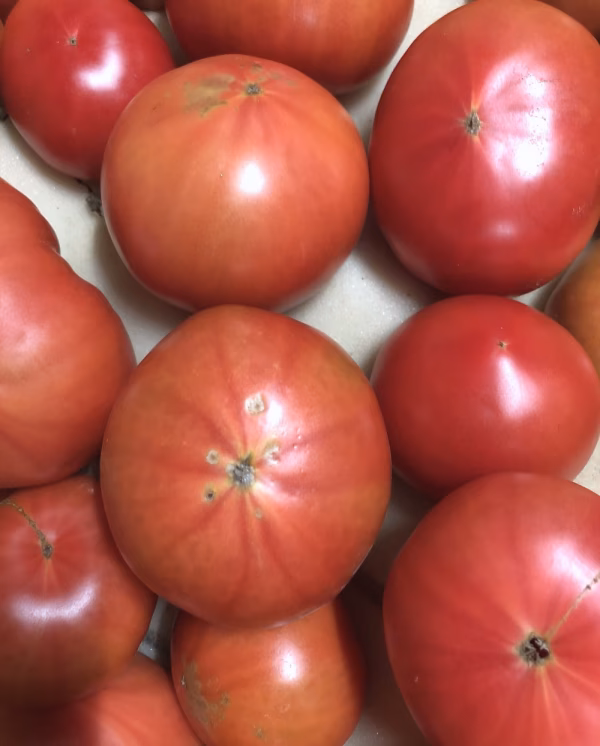規格外の商品になります。とはいえ、通常、関東関西方面へ出荷しております、A品となんら味は変わりません。傷や形が出荷基準に満たず博多のトマトになれなかった、そんなトマトちゃんたちです。