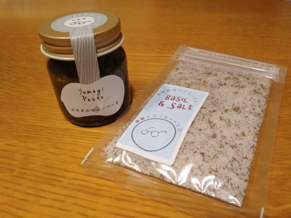 ヨモギのジェノベーゼ、バジルソルトのセットです。