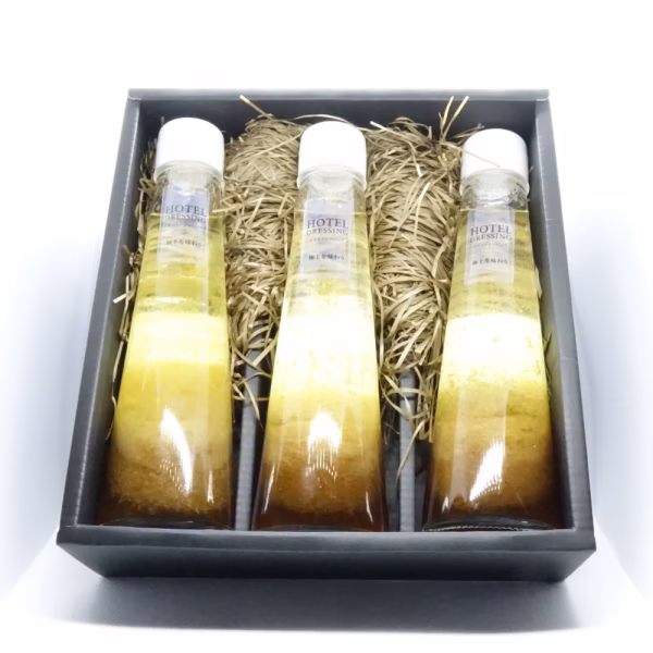 特性ドレッシングをギフトボックスにて3本お送りいたします。 ・広島県産玉ねぎ使用 ・栽培時、無農薬玉ねぎ ・120ml×3本 ☆【ホテルドレッシング】 名前の由来は、ホテルで働いていたプロのシェフが考案したところからきています。常にどんなタイミングでも使うことができる万能ドレッシングになっています。 ☆使い方 サラダはもちろんのこと、マリネ、カルパッチョなどにもピッタリなドレッシングとなっています。 ☆喜ばれるギフト箱 今回お送りするドレッシングは3本セットのギフト箱になります。