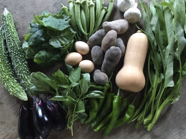 高知県・中土佐町で育てた農薬・化学肥料不使用、露地栽培のこだわり野菜は、年間約50種類。