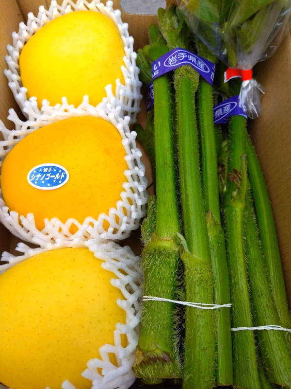 2月の販売開始以降、多くの皆様に喜んでいただいている”魔法のりんご🍏”3個(1kg)と、栽培”山ウド”(300g 3束)のセットです。