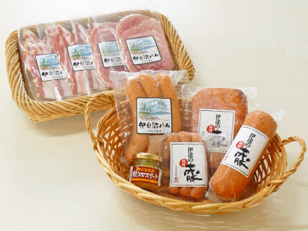 - <スモークハムスライス> 豚モモ肉、食塩、砂糖、香辛料、リン酸塩(Na)、調味料(アミノ酸)、酸化防止剤(V.C)、発色剤(亜硝酸Na、硝酸K) <原型ベーコンスライス> 豚バラ肉、食塩、砂糖、グルコースシロップ、タンパク加水分解物、リン酸塩(Na)、酸化防止剤(V.C)、調味料(アミノ酸)、発色剤(亜硝酸Na、硝酸K)、香辛料抽出物 <赤豚あらびきウィンナー> 豚肉(宮城県産)、食塩、砂糖、香辛料、リン酸塩(Na)、調味料(アミノ酸)、酸化防止剤(V.C)、発色剤(亜硝酸Na) (原材料の一部に小麦を含む) <赤豚辛口ウインナー> 豚肉、食塩、香辛料、砂糖、ラム酒、調味料(アミノ酸等)、酸化防止剤(V.C)、リン酸塩(Na)、発色剤(亜硝酸Na) (原材料の一部に小麦・大豆を含む) <赤豚ミートケーゼ> 豚肉、糖類(水あめ、砂糖)、食塩、香辛料、リン酸塩(Na)、甘味料(キシロース)、調味料(アミノ酸)、酸化防止剤(V.C)、発色剤(亜硝酸Na) (原材料の一部に小麦・大豆を含む) <チーズフランク> 豚肉、ナチュラルチーズ(乳成分を含む)、食塩、糖類(砂糖、ブドウ糖)、香辛料(大豆を含む)/調味料(アミノ酸等)、リン酸塩(Na)、酸化防止剤(V.C)、発色剤(亜硝酸Na) <赤豚香味ソーセージ> 豚肉、香辛料、食塩、砂糖、調味料(アミノ酸等)、リン酸塩(Na)、酸化防止剤(V.C)、発色剤(亜硝酸Na) (原材料の一部に大豆を含む) <粒入マスタード> マスタード、醸造酢、食塩、香辛料