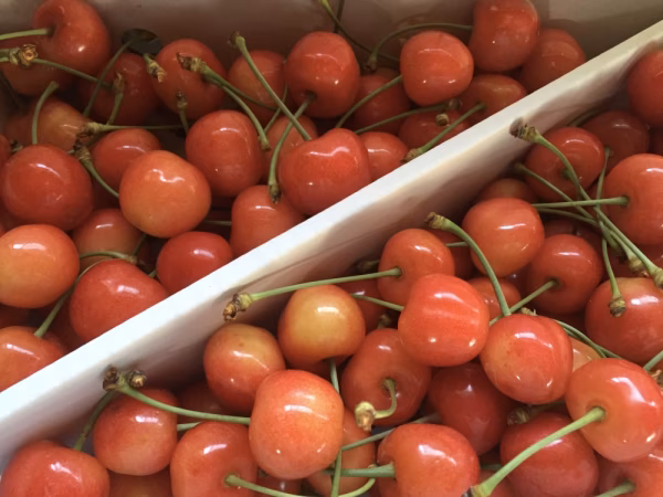こちらの商品は着色不足や小さな実割れ、キズ、双子などの規格外のさくらんぼ になります。写真は着色の薄い物だけを入れた物ですが、実際はキズがついた赤いものなど様々混ざります。