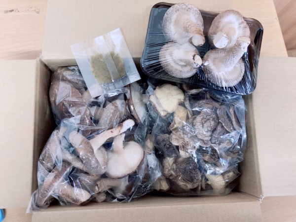 特品しいたけ、大きめしいたけ、干ししいたけも入っているしいたけお楽しみセットです!食べ比べにおすすめです。新鮮な朝採れしいたけのみ発送します。