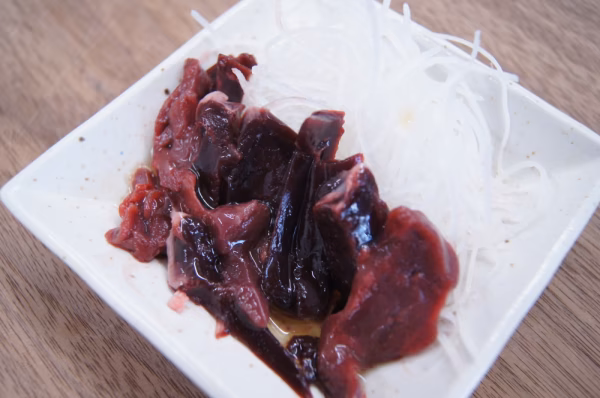 漁師でも滅多に食べることのできない、マグロの心臓の刺身。