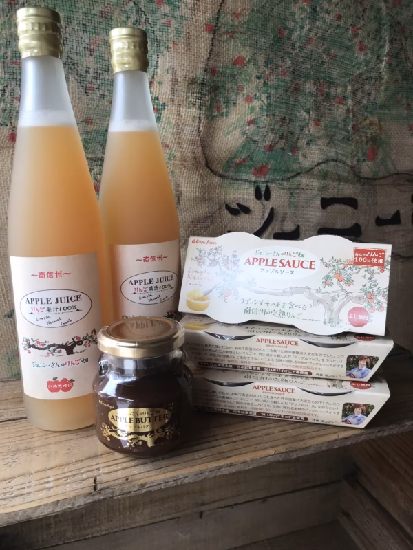 南信州「ジェニーさんのりんご畑」で採れたふじりんごを絞りました。ビタミンCも不使用の オールナチュラル、シンプルなストレートジュースです。