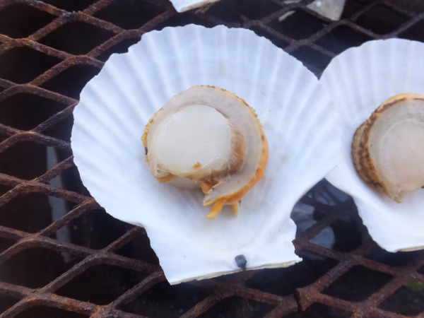 噴火湾産の甘味の強いホタテを旬のうちにウロをとり、片貝にし冷凍しました。