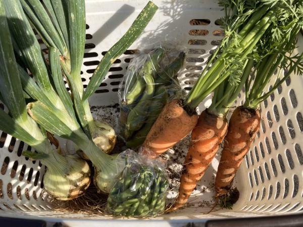 - 空豆、スナップエンドウ、春菊は終了しました。 新じゃがいも(インカのめざめ、キタアカリ)収穫開始しました。