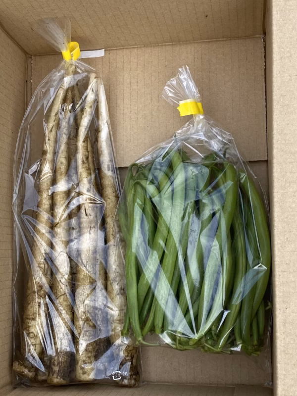 ▼自己紹介 ▼商品概要 60サイズ1ケースにゴボウ250gで1袋 インゲン200gで1袋 ▼品種・味の特徴・食べ方 品種名も新ゴボウで柔らかさ香りが抜群の品種特性です。 インゲンはシャキシャキですよ。 ▼数量、分量の目安 ゴボウは指くらいの太さで長さが25センチ(洗いゴボウ) 本数は太さにより2〜8本くらい250g入りで1袋 インゲンは太さにより本数は変わりますが30本以上は入っています 200g入りで1袋 いん ▼栽培/生産方法、こだわり ▼注文に際しての注意点(配送方法や納期指定など)