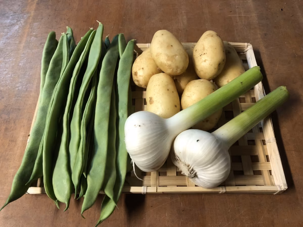 旬の野菜(ジャンボいんげん・じゃがいも・ニンニク)詰め合わせしました。