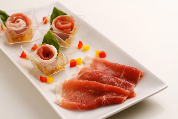 金猪豚生ハムスライス50g、金猪豚熟成モモ生ハムスライス30g、神戸ビーフ メス限定モモ生ハムスライス50g、神戸ビーフ メス限定バラ生ハムスライス50g