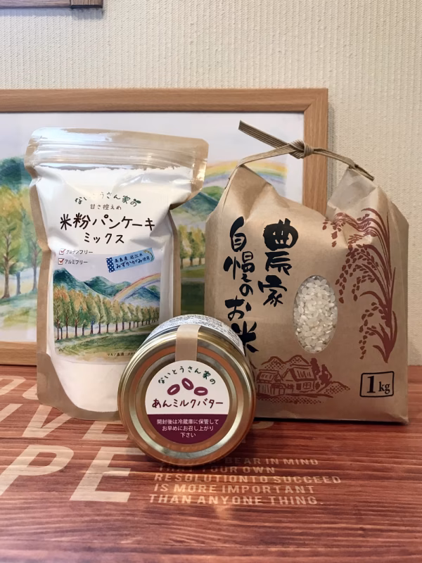 ▼自己紹介琵琶湖の北西部で 米・多品目野菜・花農家をしています。ほとんどの農産物は比良山系の伏流水と 近江牛の堆肥を使って作っています。地元中心で販売させていただいています。 ▼商品概要 当園産の 大納言小豆を炊き上げ 長野県産ミルクジャムと合わせた 無添加あんミルクバターと みずかがみ(近江米)を原材料にして アルミフリーのベーキングパウダーなどと合わせたパンケーキミックスのセット 連休前に近くの道の駅限定で お土産物として発売予定をしていましたが コロナ感染で閉館になり観光客もしばらく見込めそうにないので出品しました。 お米は当園の 比良山系の伏流水で育てた1等米コシヒカリ 1kgです。 ▼品種・味の特徴・食べ方 パンケーキミックスは 全量に対して 卵2個・牛乳170cc・サラダ油20ccと混ぜ合わせ やや小さめに弱火で焼く あんミルクバターは パンに塗ったり かき氷にかけたりしてお召し上がりください。 Instagram #ないとうさん家のパンケーキ #ないとうさん家のあんミルクバター で調理例を見ていただけます。 ▼数量、分量の目安 コシヒカリ 1kgと あんミルクバター1瓶 パンケーキミックス1袋 ▼栽培/生産方法、こだわり 特にあんミルクバターの 小豆は天日干し ▼注文に際しての注意点(配送方法や納期指定など) あんミルクバターは 冷暗所で保存し開封後は 冷蔵庫に入れて早めに お召し上がりください。