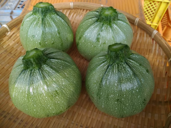 こちらの商品では、丸い形のズッキーニを、緑色(オリーブ)4個でお届けします。