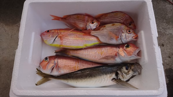 延縄漁で釣った魚です!アマダイとイトヨリダイは必ず入ります。その他は漁次第になりますので、ご了承下さい。例えば、ヒメコダイ、マダイ、レンコダイ、サバ、トラギス、カサゴなど入る予定です。