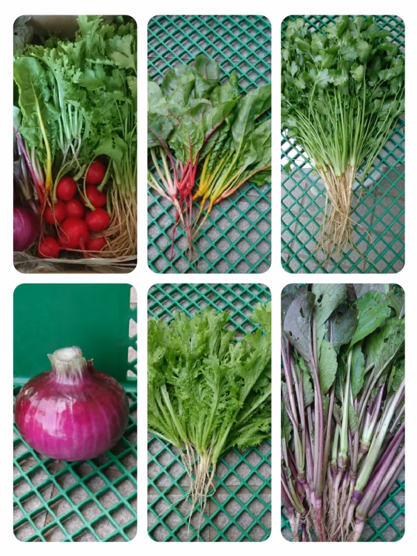 露地栽培のパクチーと生で食べられる野菜をおまかせの3〜5種類で、80サイズクール便にてお届けいたします。