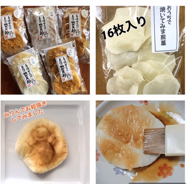 そして、ご家庭でせんべいを焼き、ひと味違ったおうち時間を楽しんで下さい。味付けは、醤油を塗っても良し、塩コショウやカレーパウダーなどもオススメです。