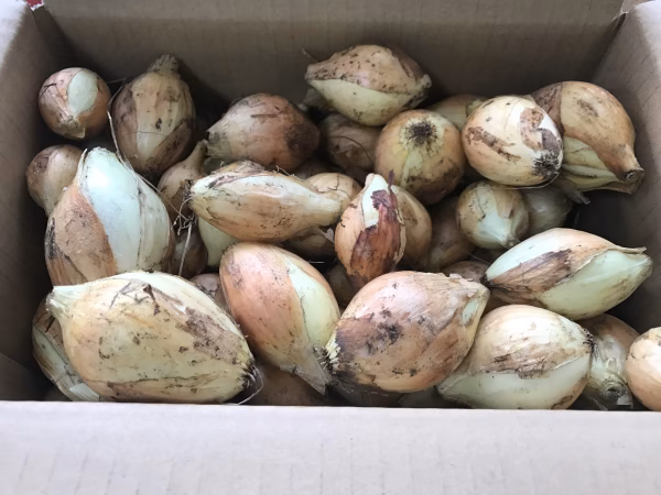 ピンポン玉サイズから更に小さいサイズまで。まるでペコロスのようなサイズ感の玉ねぎです。