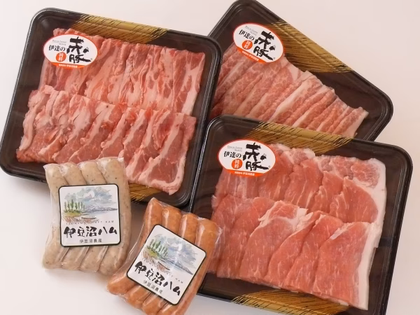 製品の原料となる「伊達の純粋赤豚(伊豆沼農産の登録商標)」は、宮城県の畜産試験場が系統造成した「しもふりレッド」を純粋交配させて生産した肉豚で、その名のとおり、脂肪交雑が多いのが特徴です。毛色が赤いため赤豚と名付けました(品種:デュロック種)。