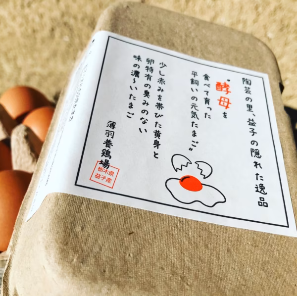 『酵母を与えて育った平飼いたまご:益子うまれの元気たまご』を6個入りを12パックで合計72個になります。