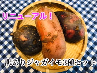 リニューアルしました、幻のジャガイモ3種セットでございます。タワラアルタイル彦星をタワラヨーデルへ変更しました。