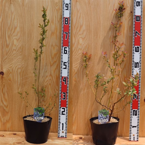ブルーベリーは1本では実がなりにくいため、他のハイブッシュ系品種を近くで植えて下さい。花や実はついていません、また落葉樹のため冬には葉が落ち春になると芽吹きはじめます。