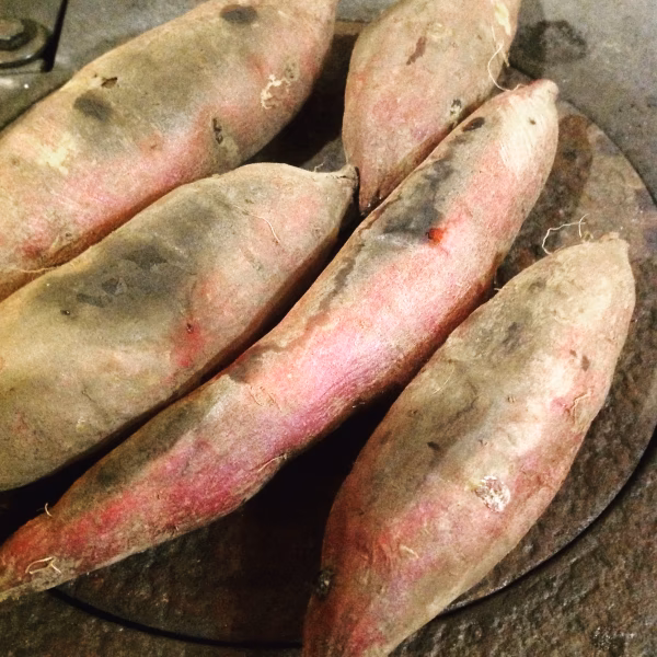 焼き芋のコツは水分を適度に残すこと。低音で表面が焦げるまでじっくりと焼きます。